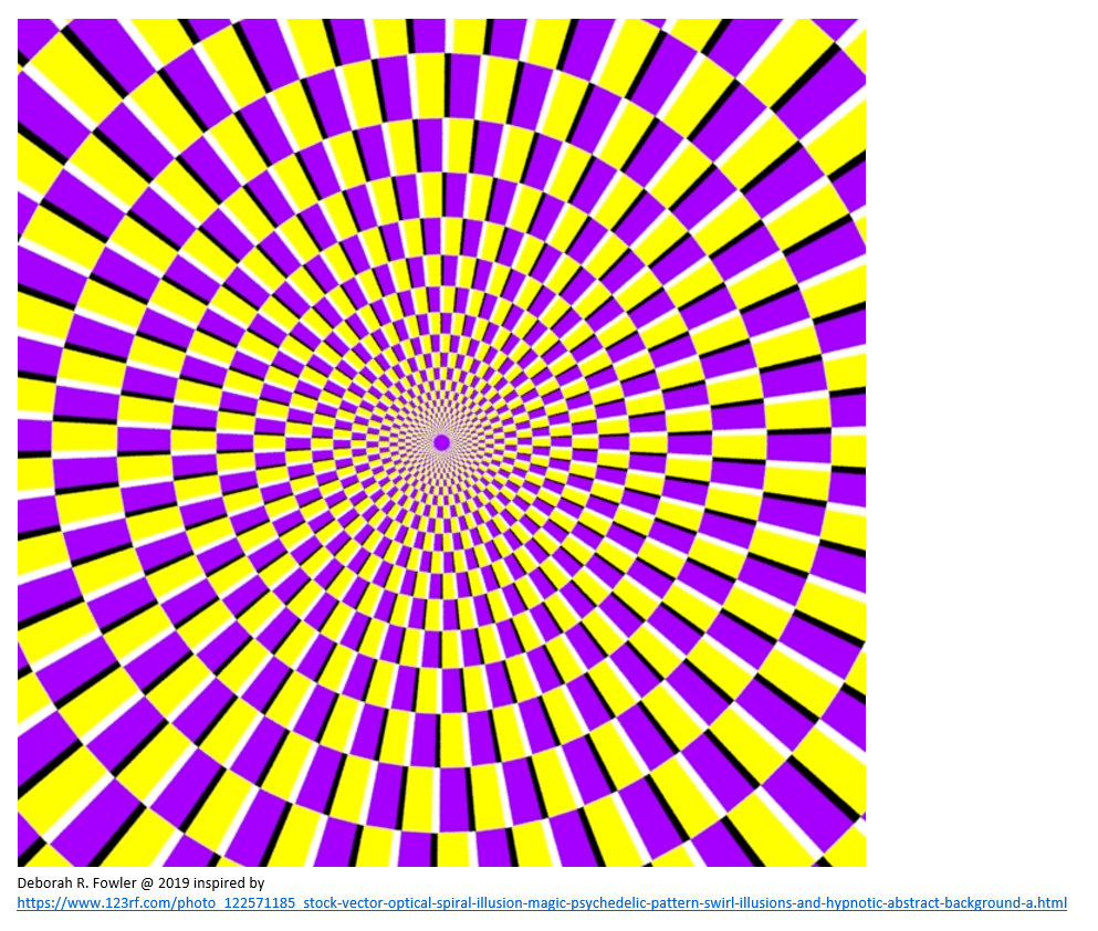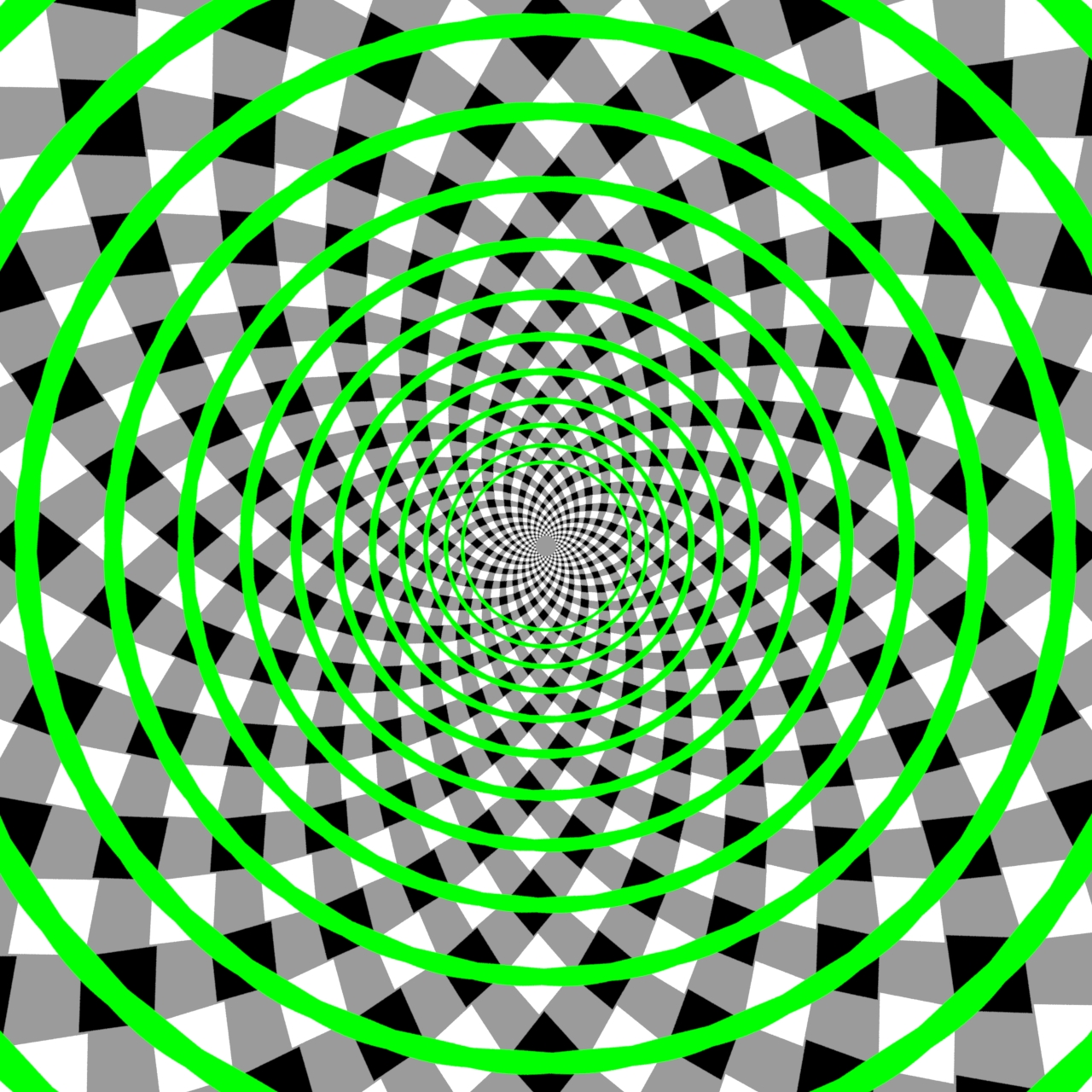 Inspiration REFERENCE by Akiyoshi Kitaoka, this spiral illusion which is concentric circles that appear to be spirals can be found at http://www.ritsumei.ac.jp/~akitaoka/uzu-e.html.