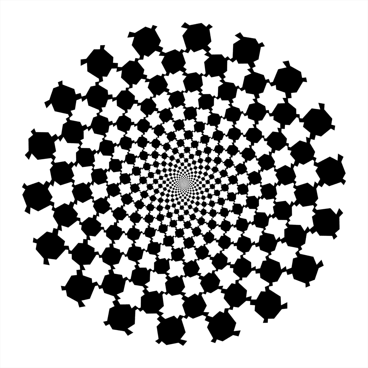 I recreated this pattern in Houdini. On the right is my RESULT. The illusion is named "Kame wa mannen" (Turtles live long). This also includes a link to a paper talking about spiral illusions. (https://www.ncbi.nlm.nih.gov/pubmed/11430247?dopt=Abstract)