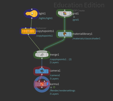 - Copy a light to points - in this context copy to points is an "instancer" node (similar to a sops instance node)