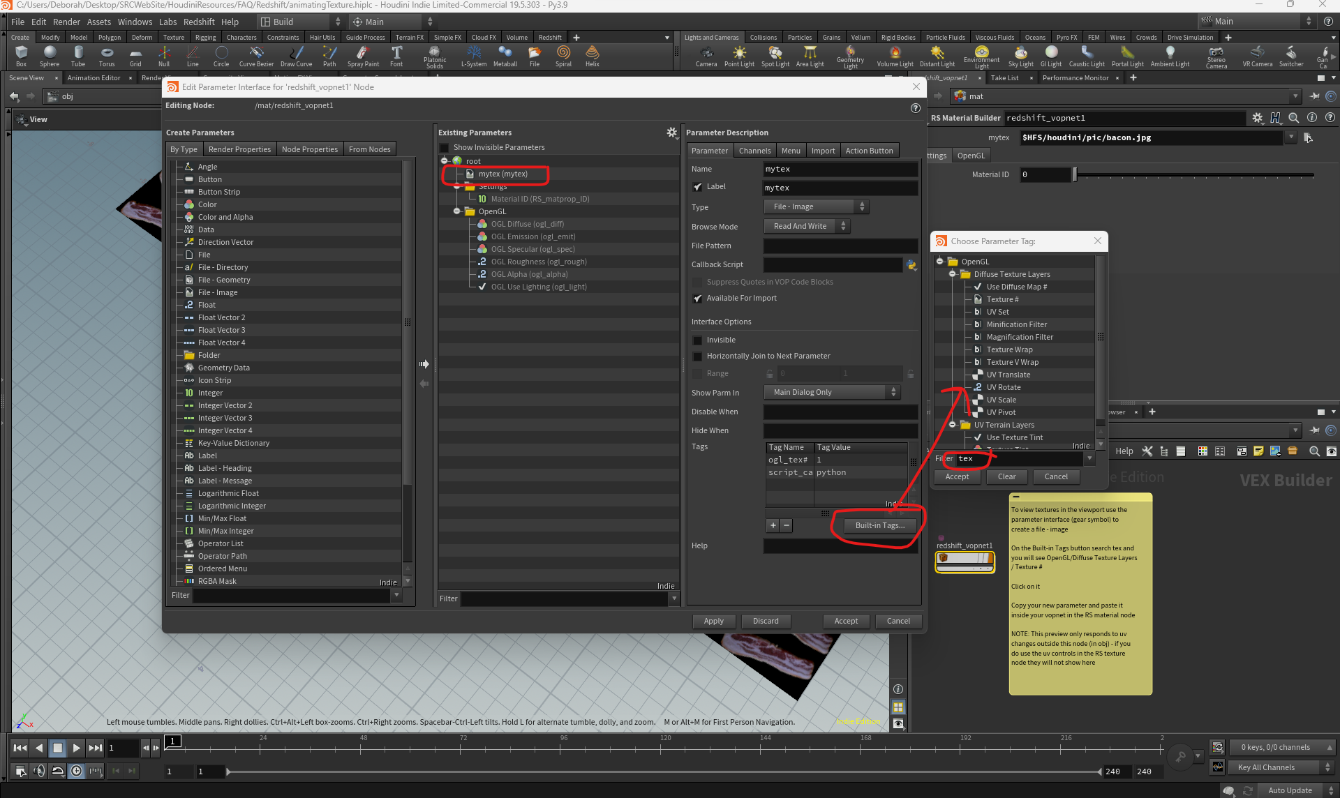 Previewing a texture in Redshift animatingTexture.hiplc