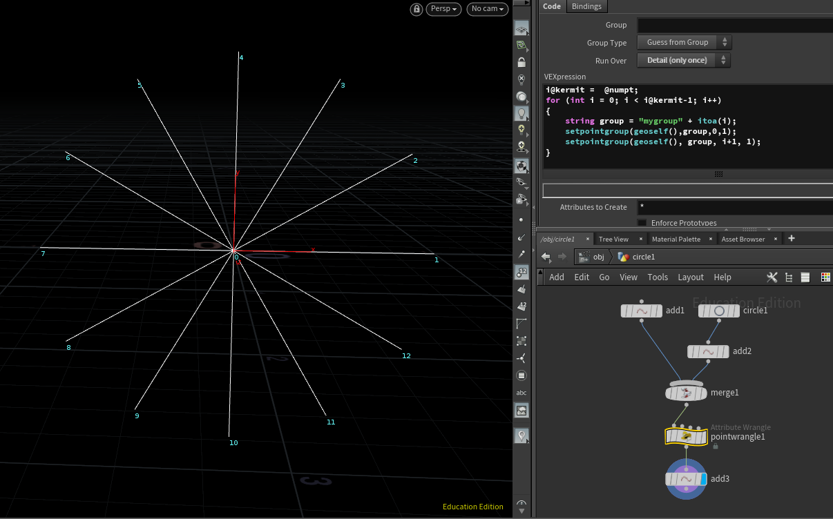 While working on replicating an optical illusion I wanted to find an easy way to connect dots from the center to every point on a curve (in this case a circle, but it could be any curve)