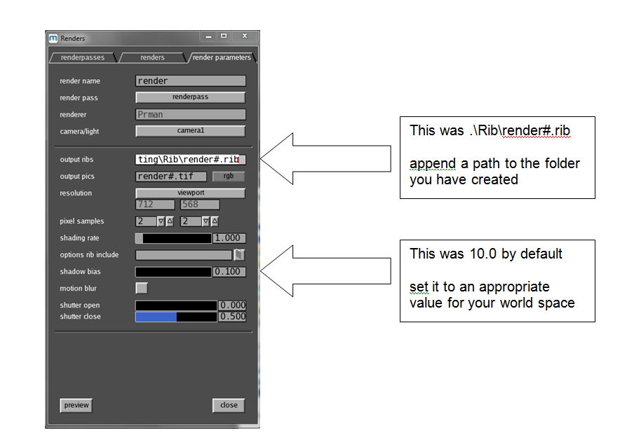 NOTE: Do not put spaces in your folder names. If you do, your pathnames will not work in renderman. (It will also cause problems with saving files in Massive)