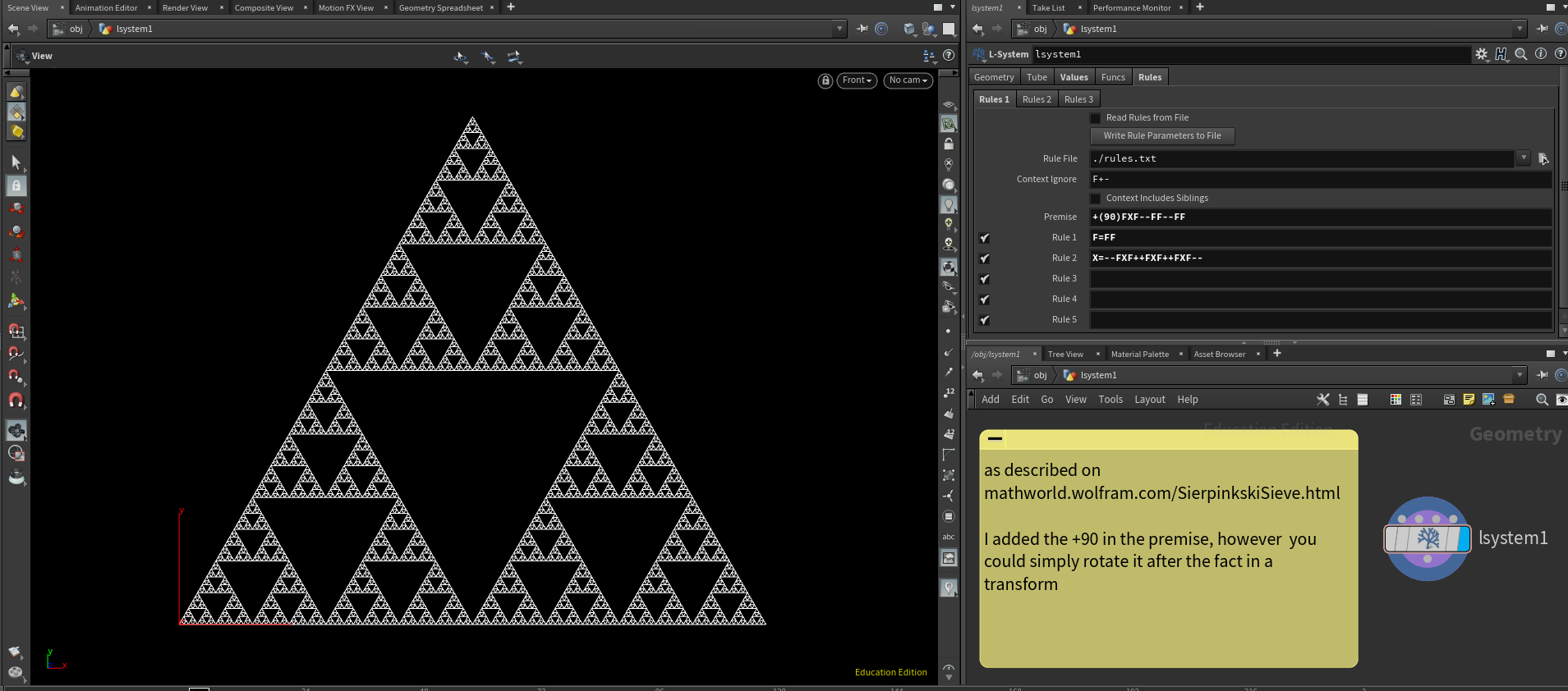 Sierpinski Triangle in a single point wrangle node in Houdini (link here). I have built