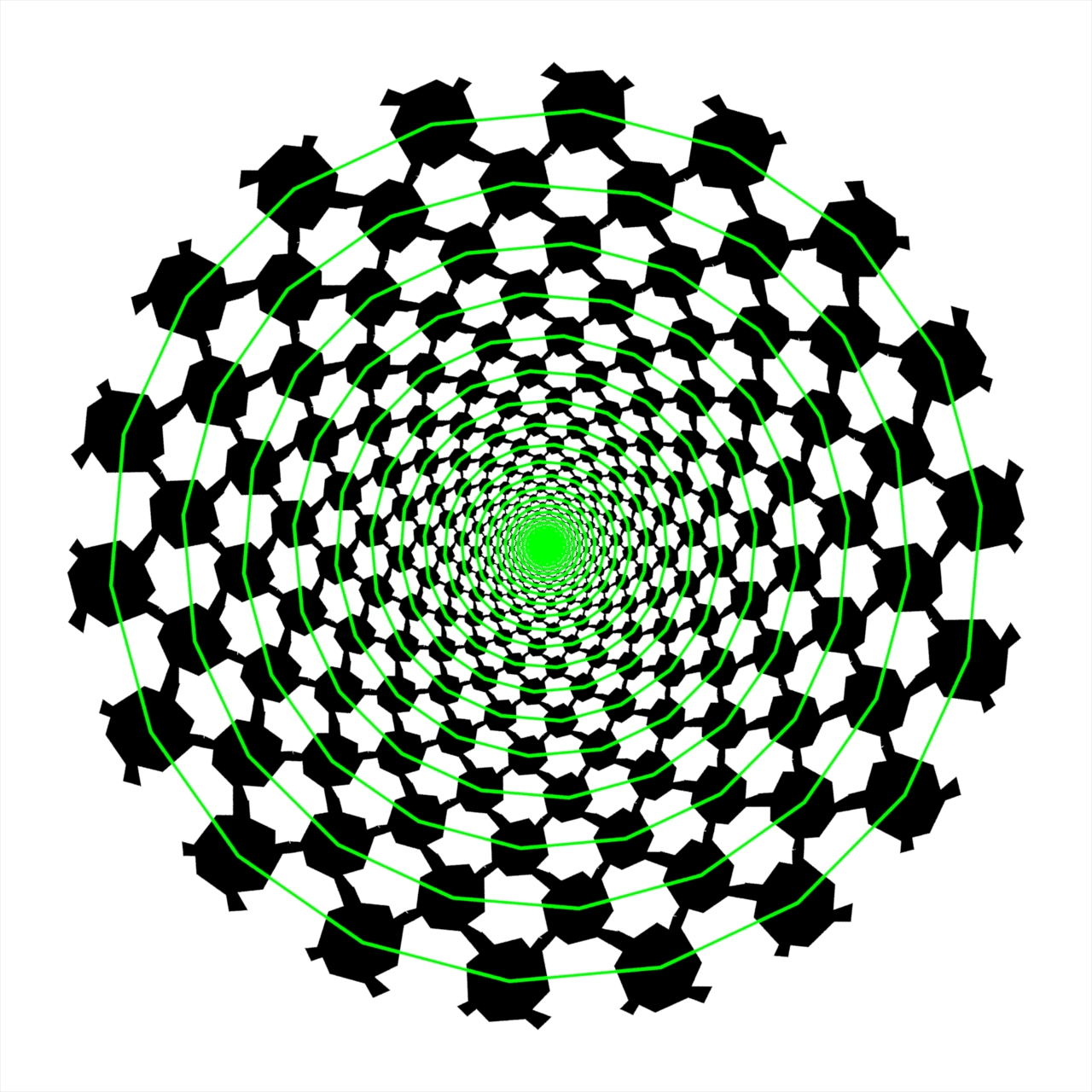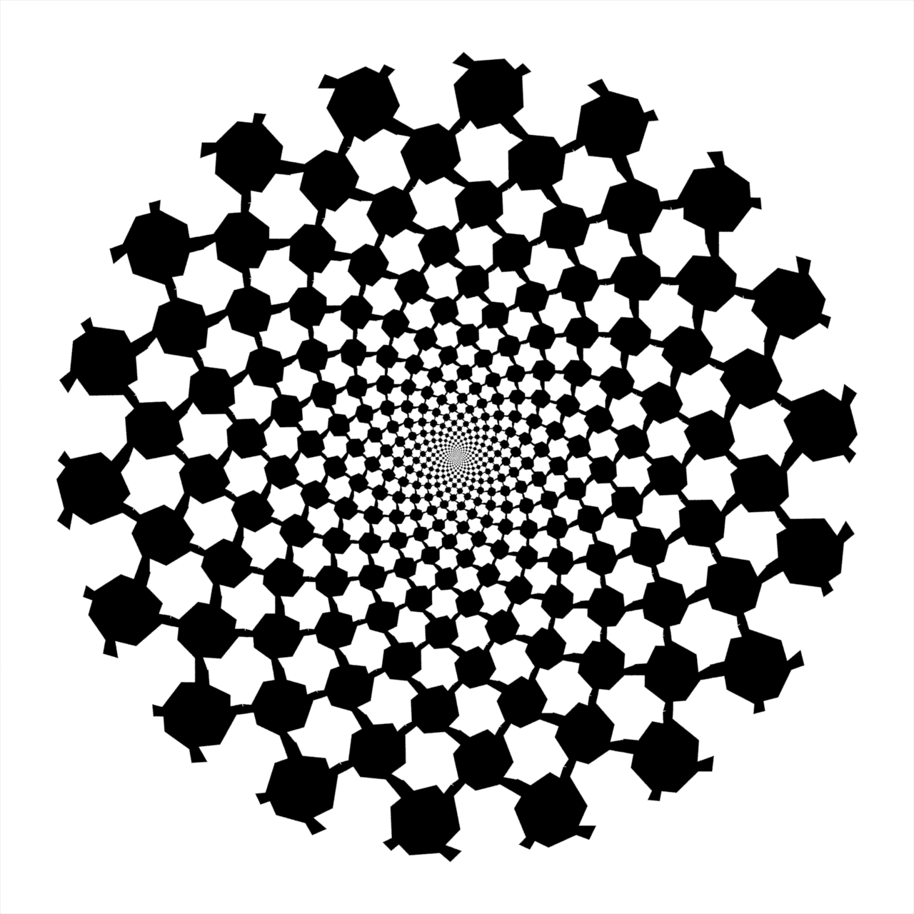 Another inspiration, again replicated using the same technique was found at https://creativemarket.com/Tartila/3852215-Optical-spiral-illusion.-Magic and can be found at https://www.123rf.com/photo_122571185_stock-vector-optical-spiral-illusion-magic-psychedelic-pattern-swirl-illusions-and-hypnotic-abstract-background-a.html I created the following in Houdini: